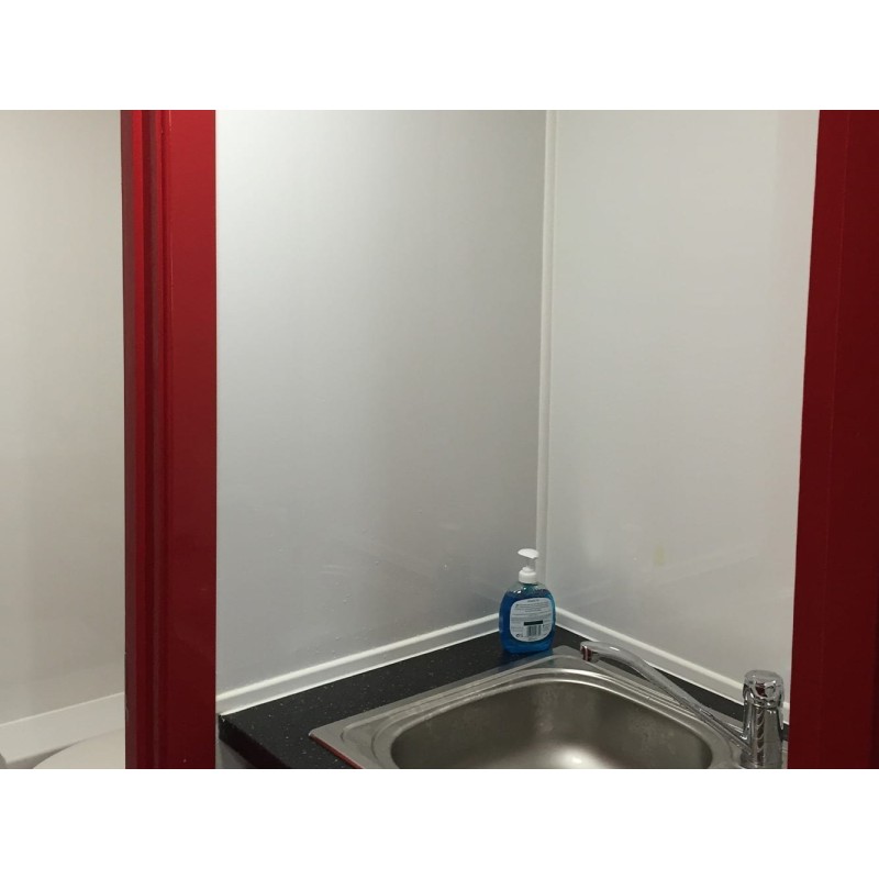 This water-resistant wall panel presents a deep white colour with a gloss finish.